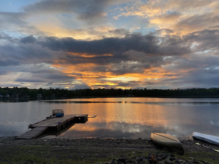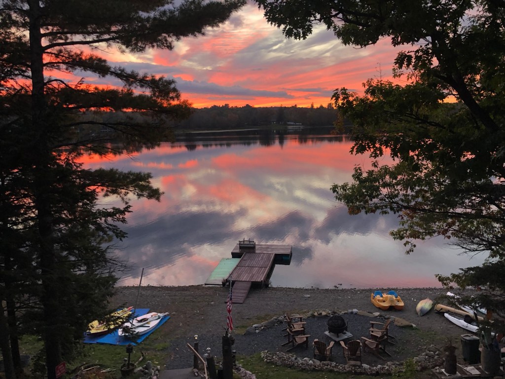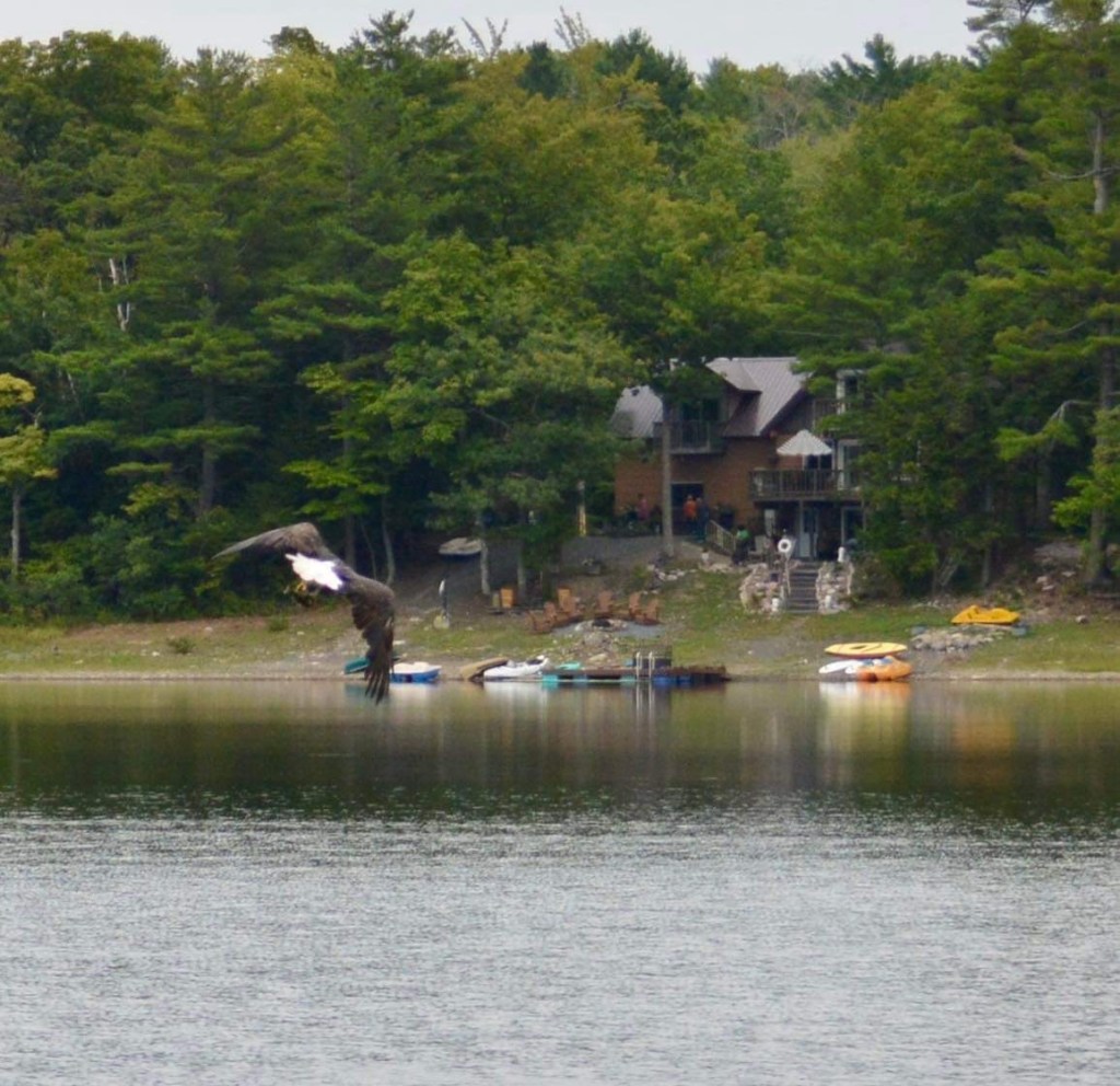 Kathleen, the owner, standing in front of some of our kayaks Enjoy the beauty of the Eagle’s Landing Lakehouse twelve months a yearCome visit the Lakehouse and sit and relaxWe have a whole fleet of kayaks, paddle boats, canoes, vintage Sunfish sailboats, standing paddle boards and rowboats. We are dog friendly too!🐾♥️We have the most amazing sunsets- ✨ALMOST every evening ✨Visit with the Thompson’s Lake Bald EagleOur lake home faces west so we often have spectacular sunset views ✨Come and experience the magical colors of our sunsets ✨✨Listen to our wind-chimes and watch the birds, squirrels and chipmunks from the large porch or your private balcony✨ Winter at Eagle’s Landing This art creation of semi- precious stones is mounted in front of a window on the main floor of Eagle’s Landing ♥️Seamus, our Scottish terrier inspecting two of our peddle boats 🐾Be amazed by the reflections of the sky on Thompson’s LakeSee the sunsets from any of our decks Come and feed our chipmunks (photo credit Barbara Armstrong) Come and see our beautiful floors made out of copper pennies and dimes View from Eagle’s Hideaway bedroom (top floor) 🐾We are dog friendly 🐾❤️The Thompson’s lake eagle flying to Eagle’s Landing (photo credit Michelle Zapp) ✨Come visit us during the winter too! 💙You can ice fish, snow shoe and cross country ski on Thompson’s Lake.✨Come celebrate the holidays at the lake house ♥️Beautiful scenery during the winter at Thompson’s LakeDuring the winter, the sunsets still appear ♥️✨Fall is beautiful at Eagle’s Landing✨We supply our guests with seasoned firewood Go for an evening swim and enjoy the sunset ✨Come visit us✨
